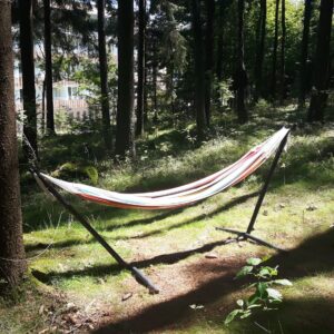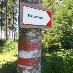 Dort sind wir auf dem Franzensweg spaziert mit Ruhestätte im Wald. Es war sehr warm, dann heiß.