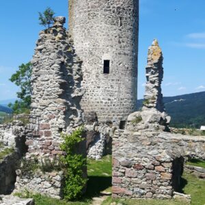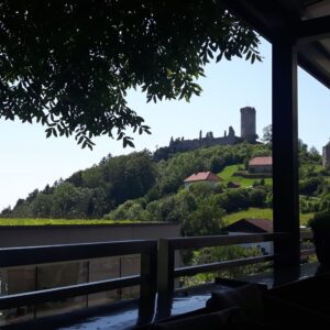 In Waxenberg sind wir in der Mittagshitze zur Burg hoch gekeult, aber dann ganz entspannt im Ort im Lokal auf der Terrasse gesessen.