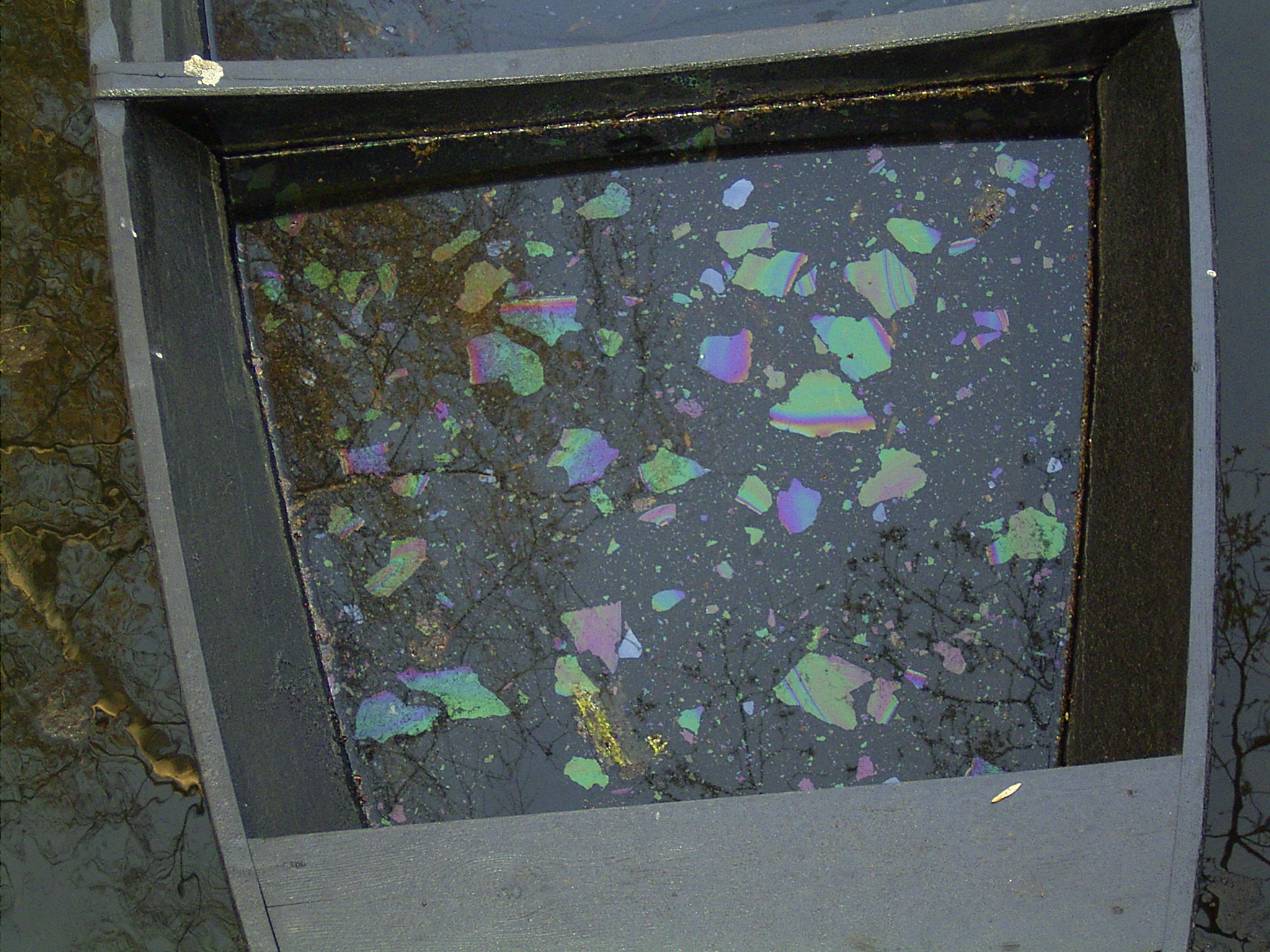 Spreewald Kahn mit öligem Wasser gefüllt