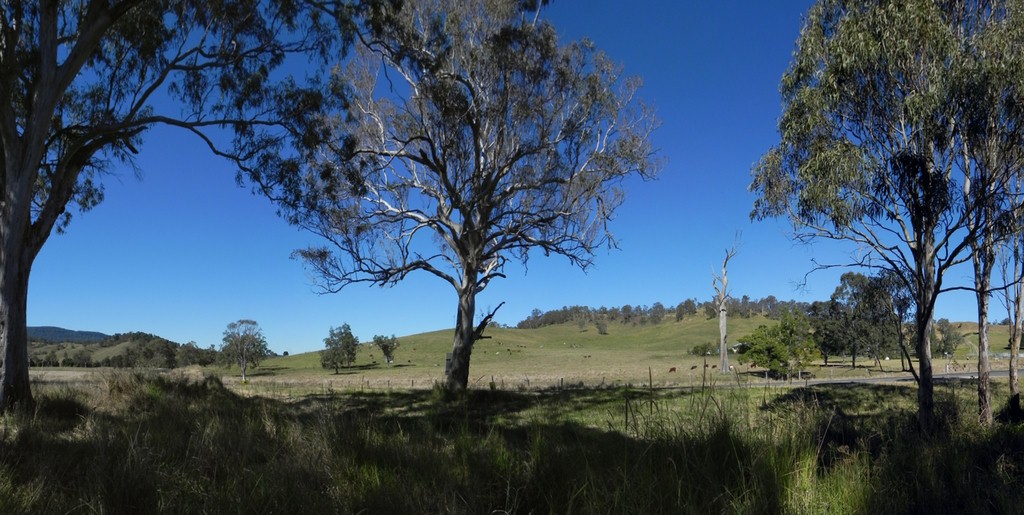 landscape with trees hills and cattle